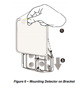 5. Mount the detector on the bracket by sliding it downward until a click is heard